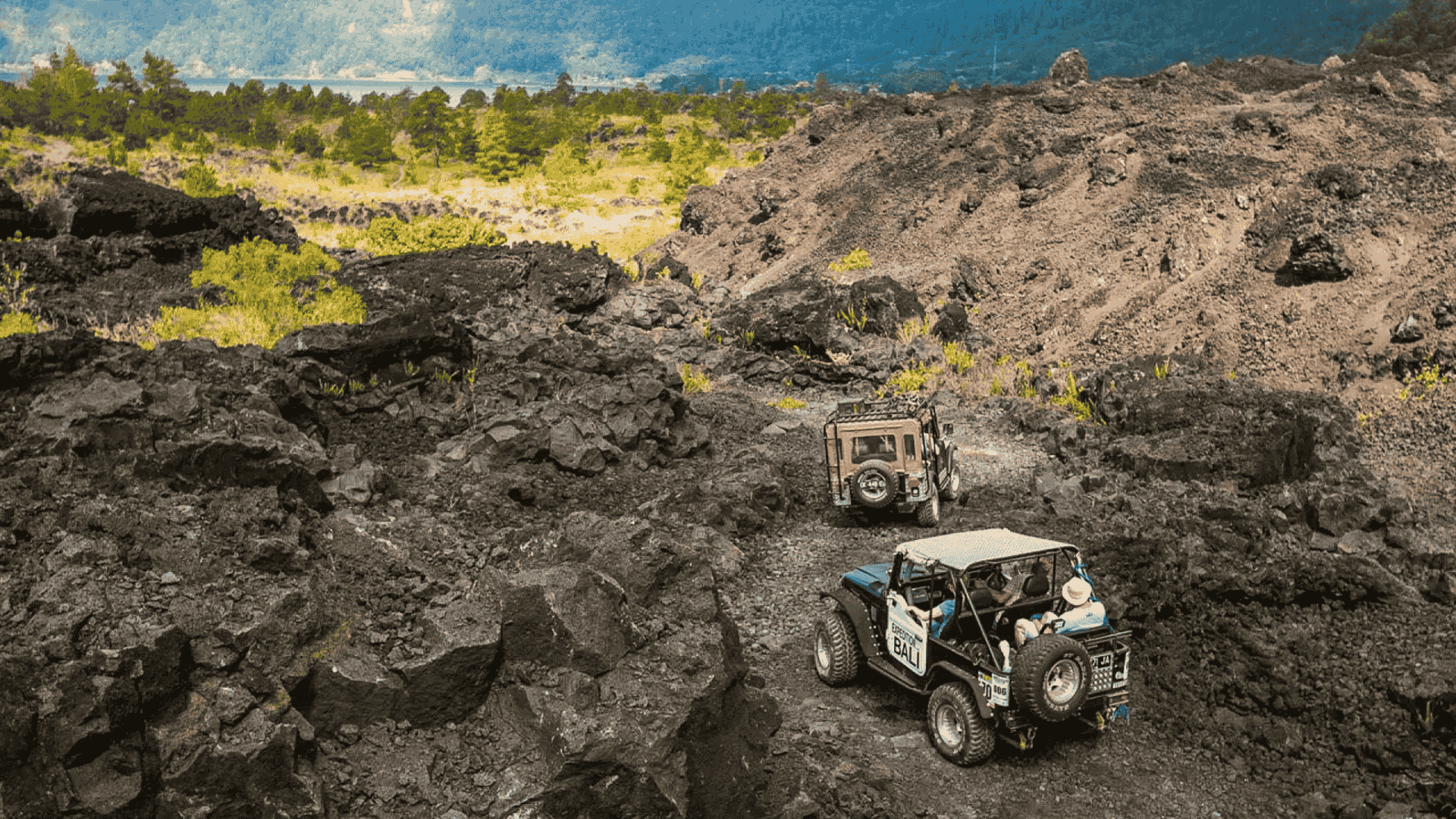 Continue your adventure driving through Mount Batur’s black lava fields — surreal volcanic landscapes formed by the 1963 eruption. Great spot for unique photos and off-road fun.