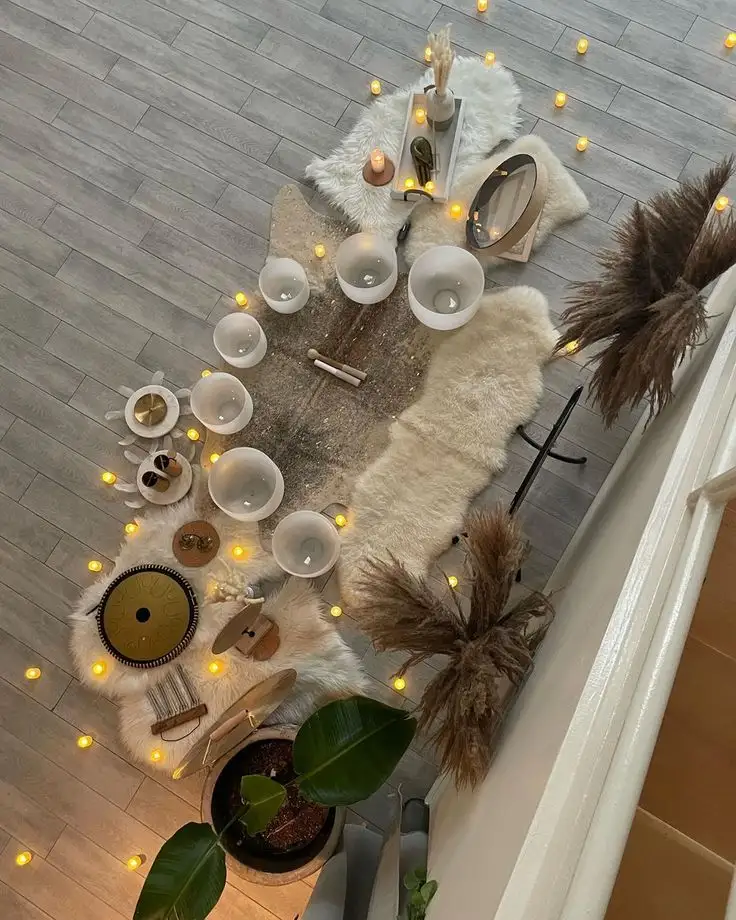 You and your partner will lie comfortably on mats while different sound healing instruments and frequencies are played around you. These vibrations interact with the body's energy field, helping you enter a deeply relaxed and restorative state.