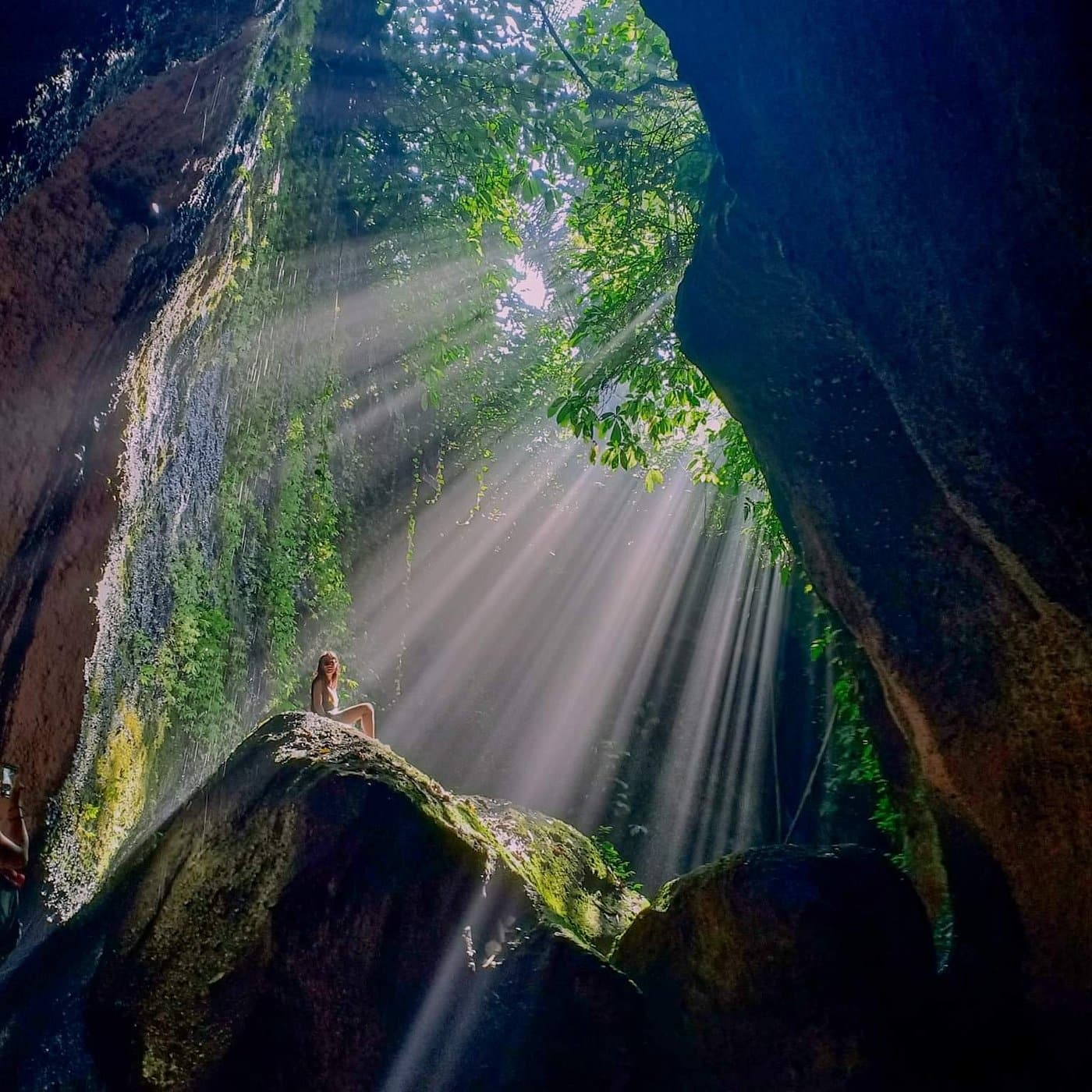 Step into a hidden cave where sunlight pierces the jungle canopy, creating magical beams above a sacred waterfall. It's one of Bali's most photogenic spots and a moment of true awe.